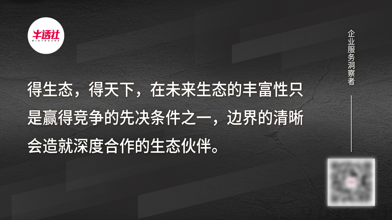 二抢生态。巨头深知自己再强大,也无法一家满足客户的所有需求,于是生态应运而生,这也是巨头在 B 端通往下一个巅峰的开始。得生态,得天下,在未来生态的丰富性只是赢得竞争的先决条件之一,边界的清晰会造就深度合作的生态伙伴。?