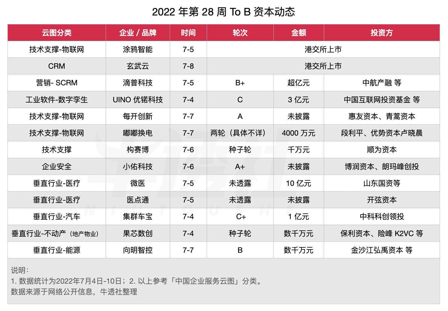 玄武云成功登陆港交所;涂鸦智能在香港联交所上市;滴普科技 B+ 轮融资超亿元|To B 周周侃