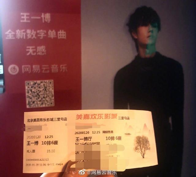 因为王一博的全新数字单曲《无感》在网易云音乐售卖取得了很好的成绩,为感谢大家支持,官方线下应援冠名厅“王一博厅”已经就位,坐标在北京三里屯美嘉影城1号厅。过年的时候在北京的猫头可以坐在“王一博厅”看电影啦~