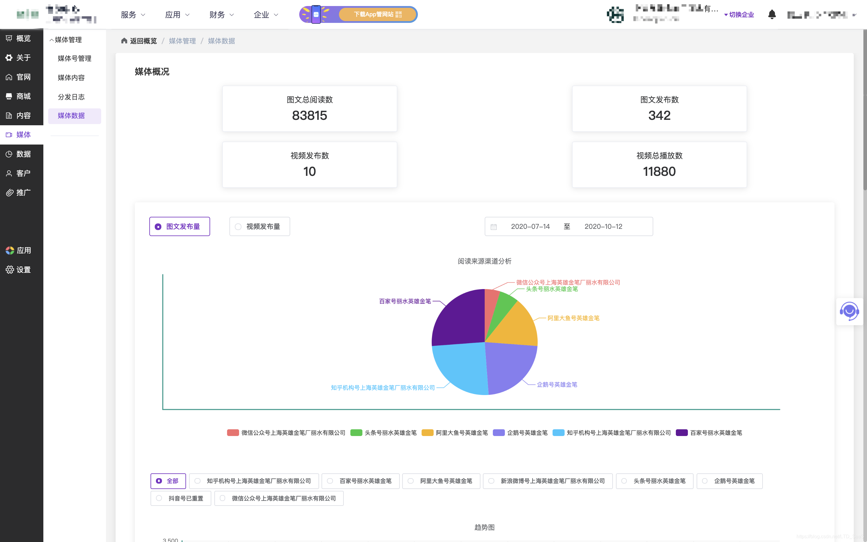 媒体线索后台收集,便于进行跟踪转化。