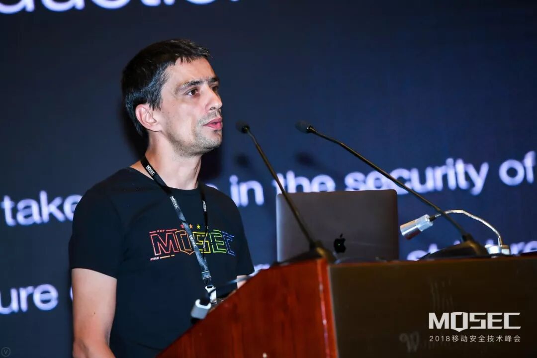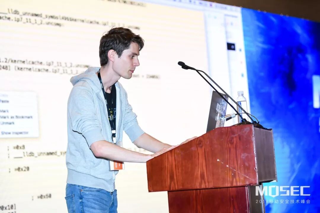有12年的从业经验的Xerub在MOSEC分享了议题《回顾苹果的iBoot》。iboot的漏洞很少人提及,这种漏洞实在太过宝贵,Xerub从iboot在安全启动的地位说起,dump iboot,分析,找洞。由于攻击面比较少,Xerub更改了HFS+文件系统,加入类似特长路径,引发超长递归,导致iboot发生栈溢出。由于没有aslr dep的保护,很容易构造代码执行。iboot的代码执行就厉害了,类似android的bootloader解锁,可以加载任意内核,获取秘钥等。为了调试iboot,Xerub还特意写了iloader用来模拟执行iboot,据说会在xerub.github.io放出来。