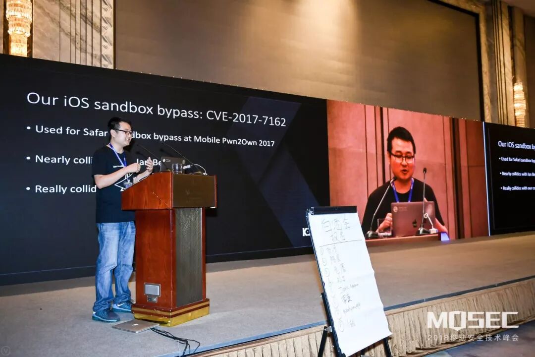 来自360Vulcan的古师父和大宝在MOSEC上分享了他们的最新研究成果,实现了iOS remote JailBreak,并在现场演示了demo。