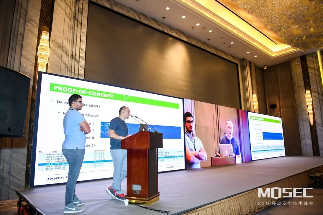 来自阿联酋安全公司DarkMatter的两位安全研究人员Arthur Garipov和Chaouki Kasmi分享了议题《粉碎栈:LTE智能手机的安全性》。两位演讲者今天确实带了不少货过来,特意强调不能拍照录像。他们对比了市面上几乎所有openbts类的项目,以及大多数sdr和sim模拟硬件,几乎每种情况他们都说了优劣。最后讲了他们搭建的test bed,为了后面的安全测试,稳定是必须的,不然会浪费很多时间在噪音的分析上。最后他们说了对baseband和enode,LTE stack的fuzzing结果,由于RD的限制,很多成果不方便公开,后续会在其博客中介绍相关技术细节。