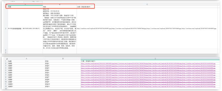 文章、视频、案例、客户问答、业务知识、媒体报道、产品介绍页增加EXCEL批量导入功能,主图实现图片本地化。