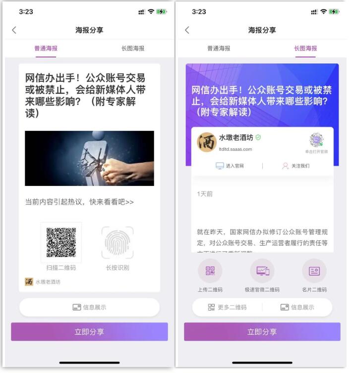 以海报方式分享文章时,优化过长的标题的显示方式。(过长的标题将自动提高字框高度、缩小字号)。