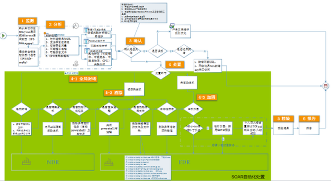 如下是绿盟科技依托SOAR实现的全局封堵、失陷主机清除、未失陷主机加固的全流程: